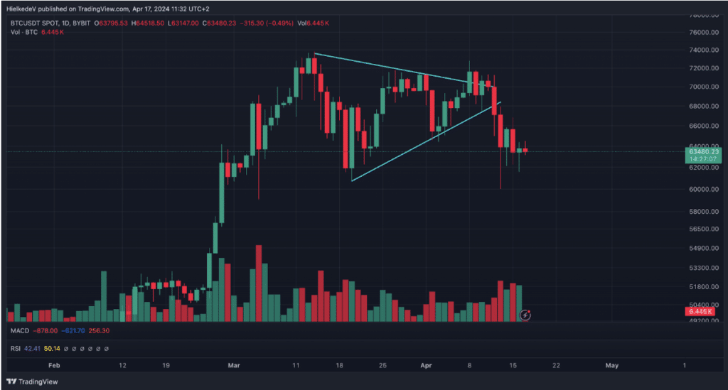 Bitcoin koers technische analyse. Bron: Tradingview.