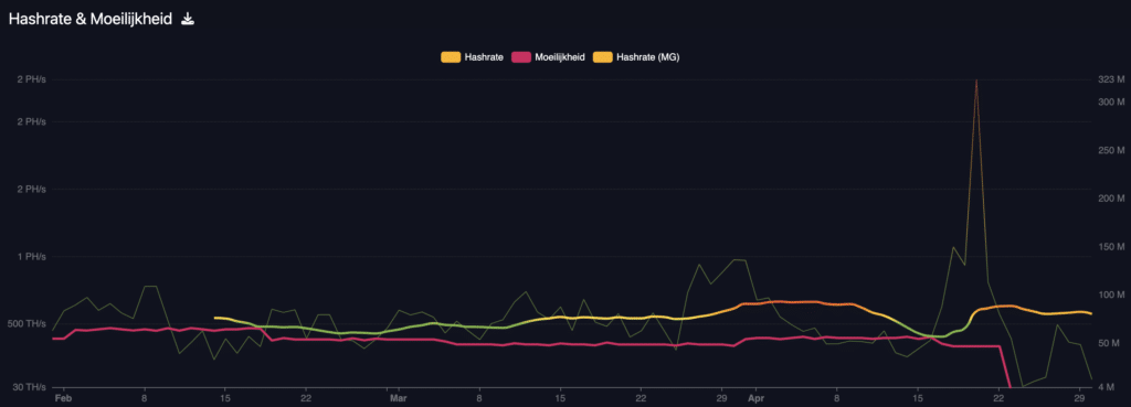 De hash rate op het Bitcoin testnet steeg naar 2.315 TH/s op 19 april en viel terug naar 346 TH/s op 28 april. Lopp benadrukte dat zijn actie bedoeld was om een reset van het testnet te bevorderen en om een bug in de consensus code aan te pakken die het mogelijk maakt om in korte tijd enorme hoeveelheden blokken te creëren.